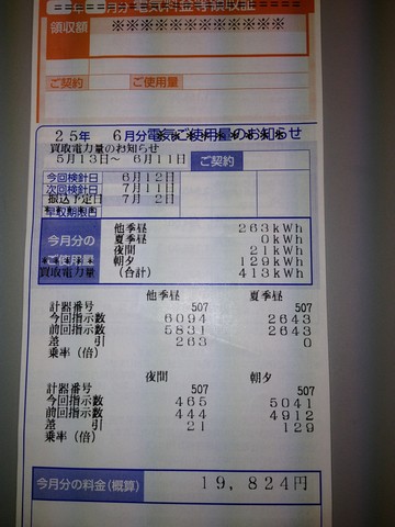 たが家の6月12日からの一ヶ月分の電気料金です!